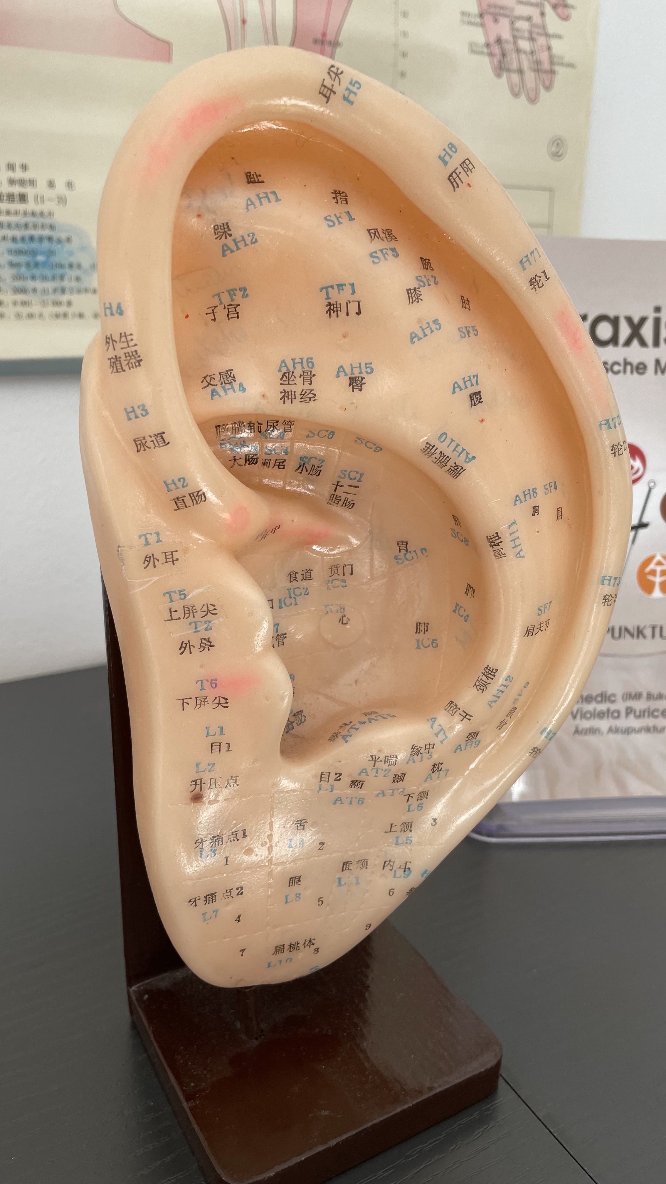 Das Ohr ist eng mit den zwölf Meridianen und den Zang-Fu-Organen verbunden. Unter normalen Bedingungen wird ein relatives Gleichgewicht zwischen den physiologischen Funktionen der verschiedenen Körperteile aufrechterhalten. Krankheiten verschiedener Organe können durch Akupunktur der entsprechenden Ohrpunkte behandelt werden. Die freie Zirkulation von Qi und Blut in den Meridianen und Kollateralen wird gefördert und dadurch die Zang-Fu-Organe kehren zu Gleichgewicht zurück. Ohrakupunktur Behandlung wird mit Nadelpunktion, Ohrmuschelmassage oder Samenpflastermethode durchgeführt.